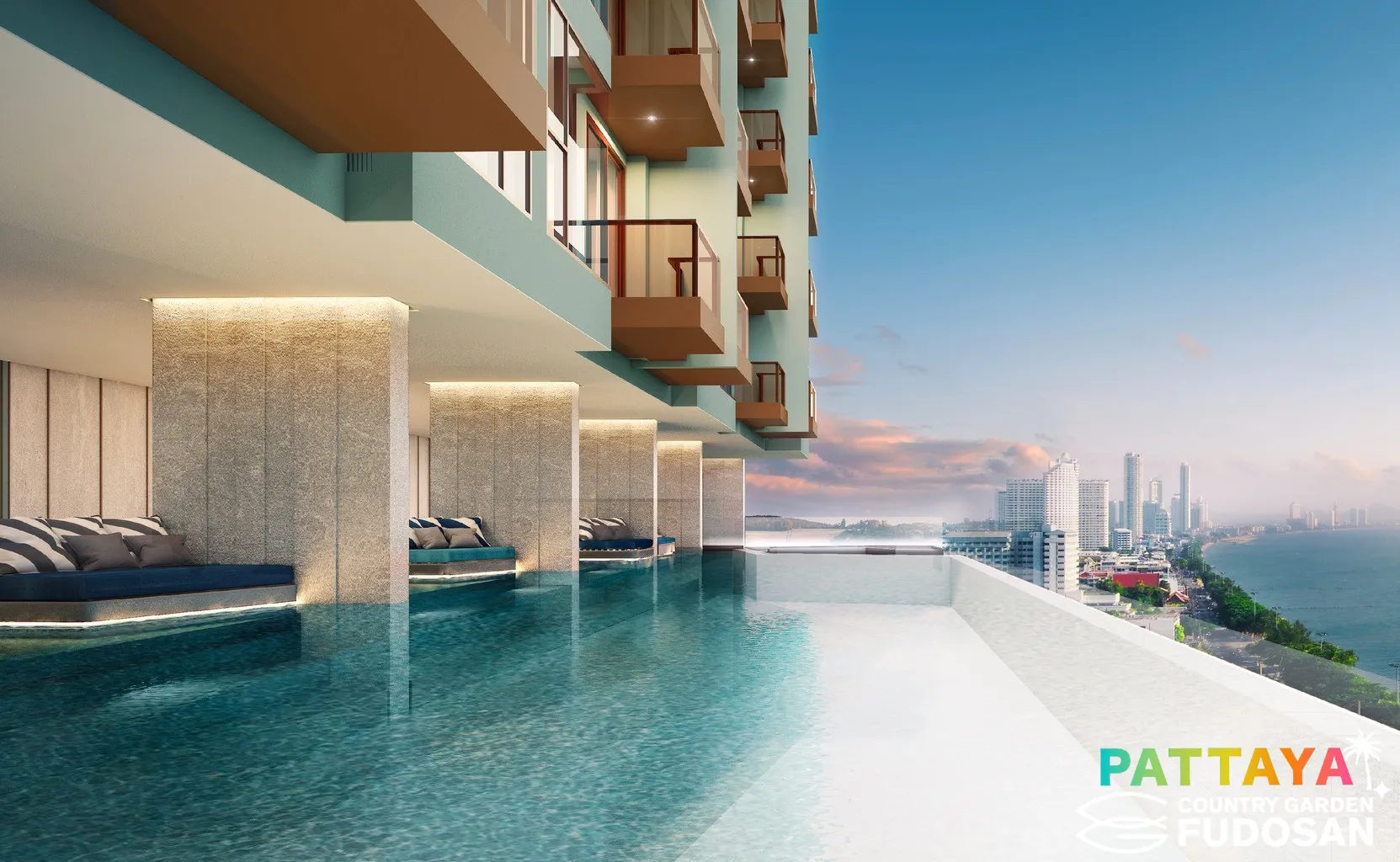 New Project Beach front condominium Own a slice of paradise in Pattaya at Arom Jomtien This 47 sq.m 32nd floor condo features a sea view with a European kitchen. Experience luxury with 24-7 security, rooftop pool, gym, garden & more. Don't miss this great opportunity!